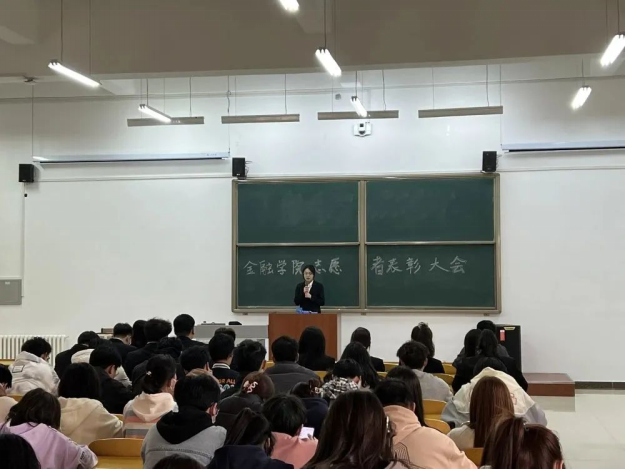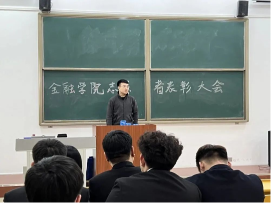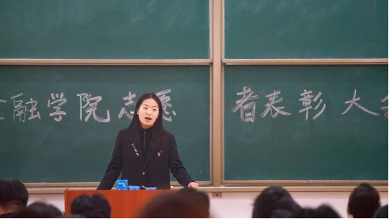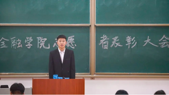 本次表彰大会首先由程老师致词,程老师在发言中提到:他们是在志愿服务过程中表现突出的优秀个人代表,他们在自己的工作岗位上勤勤恳恳、默默奉献,用自己的实际行动践行着雷锋精神和“奉献、友爱、互助、进步”的志愿者精神,他们为我院志愿服务事业做出了积极贡献。程老师的发言表达了对志愿者们工作的肯定,同时也号召同学们积极参与到志愿服务工作中来,积极传承并弘扬志愿者精神,为志愿服务贡献自己的一份力量,尽情展示金融学子的风采。