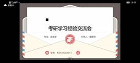 王悦悦主要分享了跨专业考研的学习方法和途径、指出从考研择校、各科学习、考研用书等几个方面都需要慎重考虑,合理安排复习时间,把握每一个进步的机会。同时要保证以积极健康的身体面对考研。