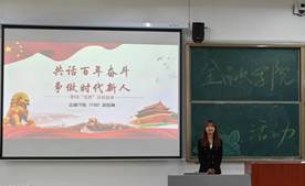 为深入学习宣传贯彻党的二十大精神,弘扬“忠诚敬业、关爱后代、务实创新、无私奉献”的“五老”精神,推动“五老”与关心下一代工作相互融合、形成合力,充分发挥“五老”的优势和作用,汲取革命老前辈矢志不渝、艰苦奋斗的精神动力,引导激发金融学院青年大学生立志成为有理想、敢担当、能吃苦、肯奋斗的新时代好青年,在新时代新征程中贡献青春力量,金融学院以“共话百年奋斗,争做时代新人”为主题的走访慰问活动为依托,举办了“党的二十大宣讲活动”。赵煜琳同学为宣讲员。