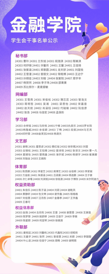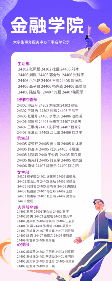 融·笃行|学生组织干事公示名单