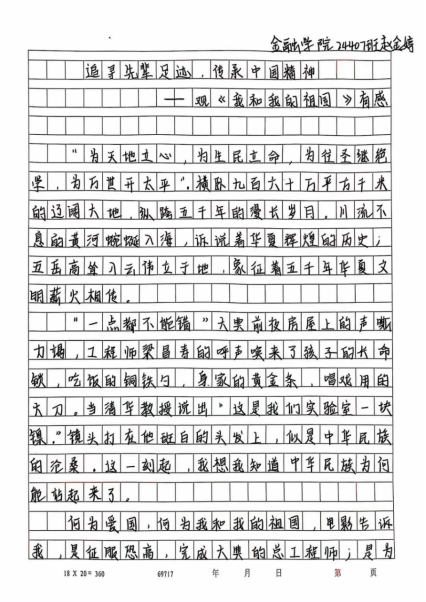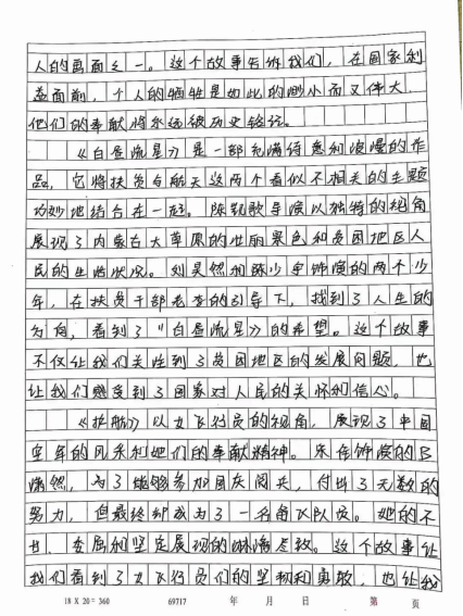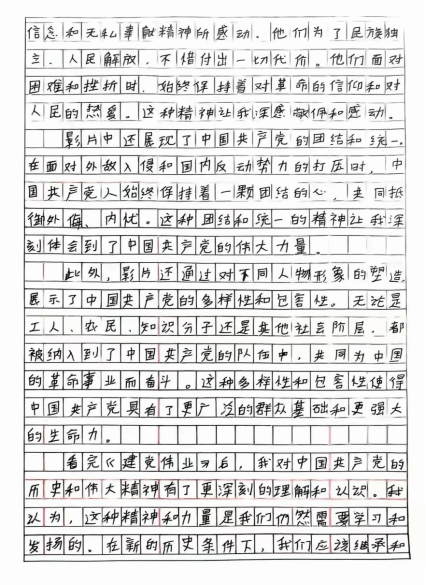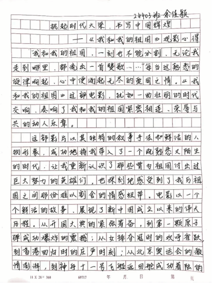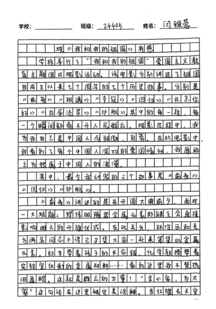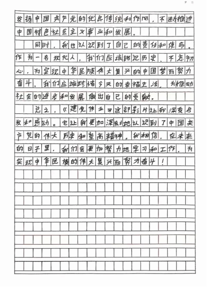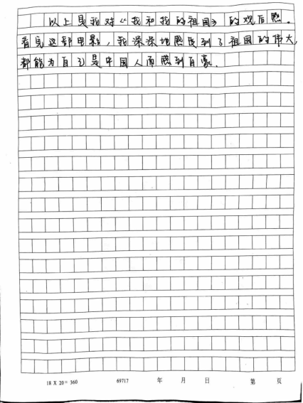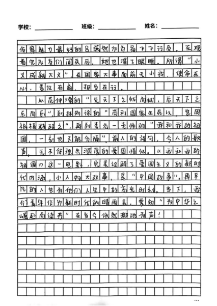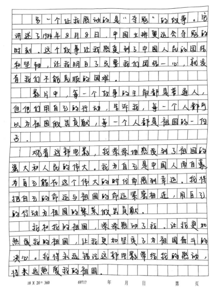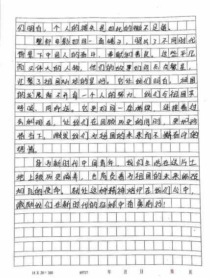 观影结束后,学子们纷纷表示出对爱国情怀的共鸣,在观影结束后写下自己的心得感悟,观看这部有意义的影片,是对于时代变迁的见证,用丰富的人物形象让学子们看到了人性的光辉,更激励学子们珍惜当下的幸福生活,激励自己的人生不断前行。