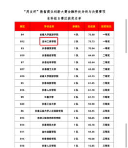本次比赛参赛选手们一路过关斩将。无论是紧张的答辩环节,还是充满挑战的实践操作,都展现出了极高的专业素养。经过激烈的角逐,我校两支代表队均取得优异成绩。投资学22407班宋臻、徐泽、张申、倪梦喆代表队取得本科组b赛区一等奖的优异成绩,并顺利晋级国赛。投资学22407班姚嘉葆、金月、刘洪伶、付欣悦代表队取得本科组a赛区三等奖的优异成绩。吉林工商学院获优秀组织奖,霍云雷、王天极获“优秀指导教师”荣誉称号。