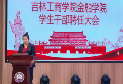 上一届学生干部代表王可发言,她结合自身任职经历,为新一届学生干部总结了宝贵经验。她勉励各位学生干部传承金融学院优良传统,尽职尽责,为学院而继续奋斗。新一届学生代表干部国禹馨上台发言,她代表,未来新一届学生干部将以饱满热情服务同学,助力学院发展。大家会密切关注同学生活,携手共进,为金融学院的发展贡献力量。