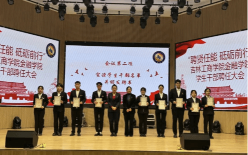 为打造高素质、高水平大学生干部队伍,更好开展团学工作,金融学院于11月5日在博学楼117剧场举办“聘贤任能,砥砺前行”学生干部聘任大会。金融学院党委副书记李美婧、学团办副主任李秋颖、专职辅导员程鹏程、谢云超、周东石,社团指导教师张骐恩、孙湘楚、许永健出席,金融学院学分团委、学生会、大学生事务服务中心、各社团负责人及2024级学生代表参会。