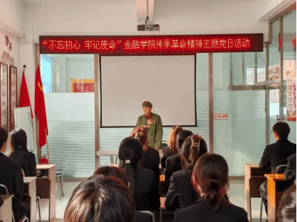 为传承弘扬伟大革命精神,进一步提高党员干部的党性修养,以红色故事激励党员干部在新征程上砥砺前行,近日,金融学院学生党支部开展“不忘初心 牢记使命”传承革命精神主题党日活动。金融学院学生党支部书记李秋颖、宣传委员程鹏程及学生党员发展对象们走进蓝天社区,聆听抗美援朝老兵杨秀友讲述那段激情燃烧的岁月。