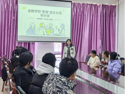 近日,金融学院“青葵”语言社团在厚德楼A区金融学院“融昭”学风建设工作室开展了培训会,李美婧、孙湘楚担任社团指导老师。