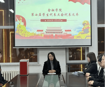 为深入学习宣传贯彻习近平新时代中国特色社会主义思想和党的二十大精神,推动校园学生会发展,加强学校民主管理,响应我校第七次学生代表大会,11月12日,金融学院于厚德楼A区“融昭”学风建设工作室召开第七次学生代表大会选举工作会议,会议由学院党委副书记李美婧主持。