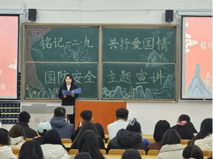 最后,宣讲团成员王婉彤引领众人深度探究了一二•九运动里蕴含的团结与牺牲精神。她谈到,在一二•九运动期间,学生们彰显出齐心协力、遇困不退的伟大精神,此精神在我们的日常学习生活亦极具培育价值。不管是学业上彼此扶持,还是遭遇挑战时联袂共进,我们皆应踊跃践行团结互助理念。与此同时,她还激励大家把这种团结精神融入到为社会奉献己力的实际作为之中,用新时代的笔触书写爱国情怀的崭新篇章。