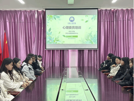 会议邀请学校心理健康教育中心田雨顺老师进行培训讲解,辅导员程鹏程出席并主持会议,金融学院各班级心理委员及心援部全体成员参会。