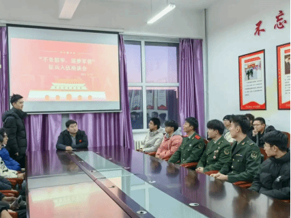 为深入贯彻国家征兵工作号召,进一步强化大学生国防意识,弘扬爱国奉献精神,激励广大青年学生积极响应祖国召唤、投身军旅,12月2日,金融学院召开了“不负韶华,逐梦军营”征兵入伍座谈会。金融学院辅导员周东石,退役士兵 23301许飞、24201李春霖、24501管延硕出席了本次座谈会。