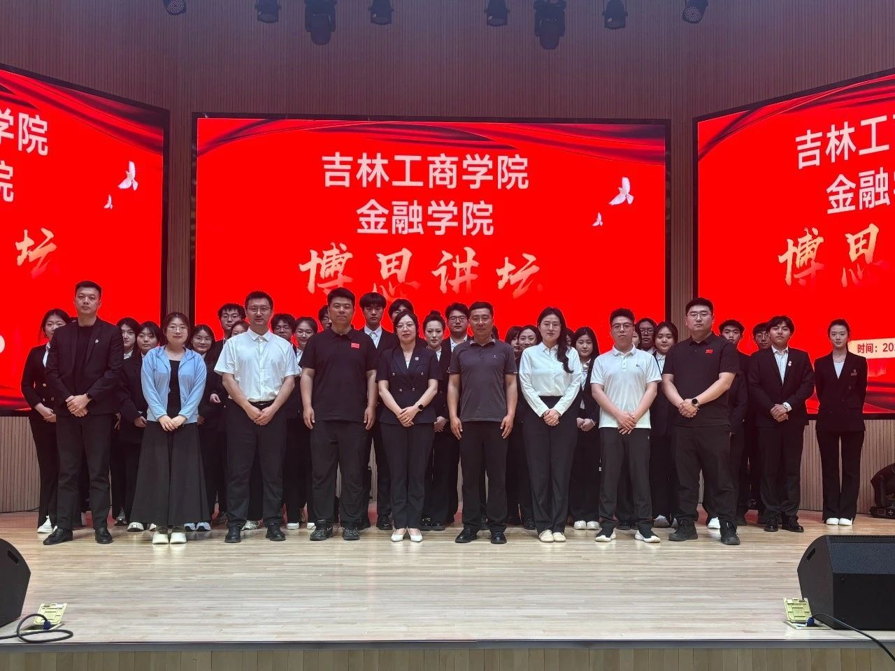为持续强化学生思想政治教育工作,促进校际协同育人,6月5日,我院联合吉林财经大学金融学院、长春金融高等专科学校金融学院,以“思政领航,筑梦金融”为主题,举办了“思政领航,筑梦金融”博思讲坛活动。吉林财经大学金融学院团委书记邢伟罡、辅导员王梦媛,长春金融高等专科学校金融学院团委书记王洪亮、辅导员范志远,我院党委副书记李美婧、学团办主任孙殿春、副主任李秋颖、辅导员杜婧舟、谢云超、周东石出席了本次活动。