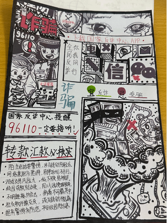 本次活动以书法、绘画为载体,将防诈骗知识以直观的艺术形式呈现,帮助师生深入了解常见诈骗手段及其危害。通过通俗易懂的艺术表达,向更多人传播防诈知识,让防诈观念在我院师生心中扎根。
