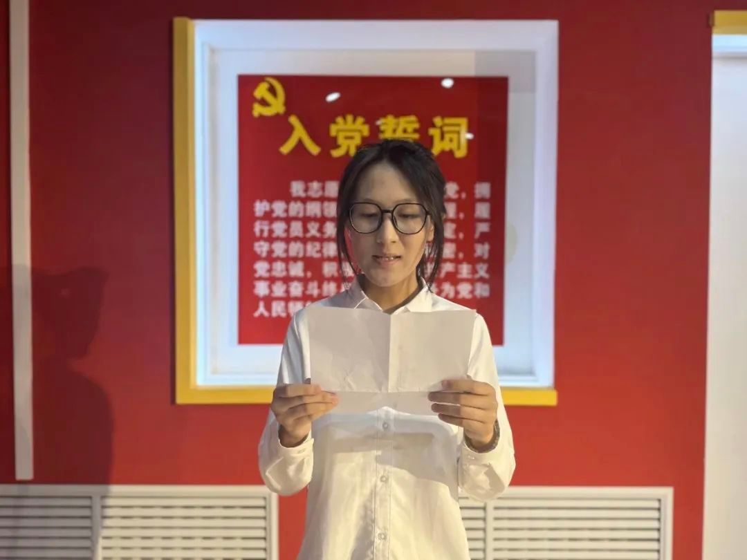 仪式在国际歌的歌声中正式开始,李秋颖同志在致辞中向十二名新发展对象提出要求,她强调,大家时刻谨记入党初心与组织教诲,将党的信念融入日常点滴,在未来的学习与生活中,始终保持锐意进取的干劲与迎难而上的魄力,脚踏实地、奋勇拼搏,以高度的政治自觉和行动自觉,践行共产党员的责任与担当,用实实在在的行动为党旗增辉,为党徽添彩,为党的伟大事业贡献坚实力量。