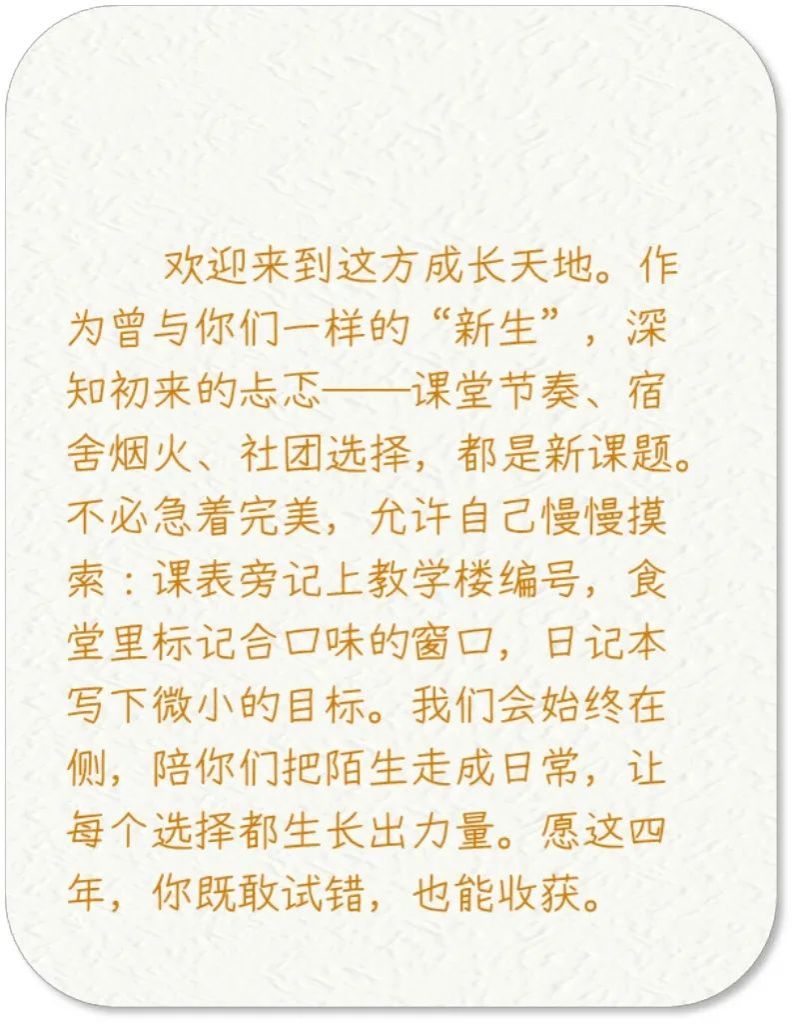 他们已准备好,用经验为你们答疑解惑,用热情点燃你们对大学生活的热爱。相信在辅导员助理的陪伴下,各位新生定能快速融入校园,开启一段充实且美好的大学时光。期待在校园中,见证你们携手共进,绽放属于自己的光彩!
