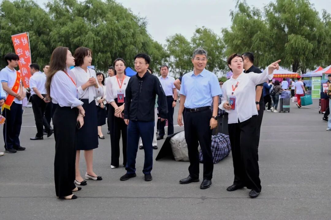 迎新现场暖意融融,学校领导一行莅临指导,为迎新工作注入强劲动力。党委书记张吉锋,党委副书记、校长李宝永,党委副书记杜希刚,副校长徐文、张熙奀、管清平、董本云深入迎新一线,细致指导各环节工作。金融学院师生精神昂扬、热情饱满,学校领导一行对我院高效的迎新组织与井然的现场秩序给予高度认可。