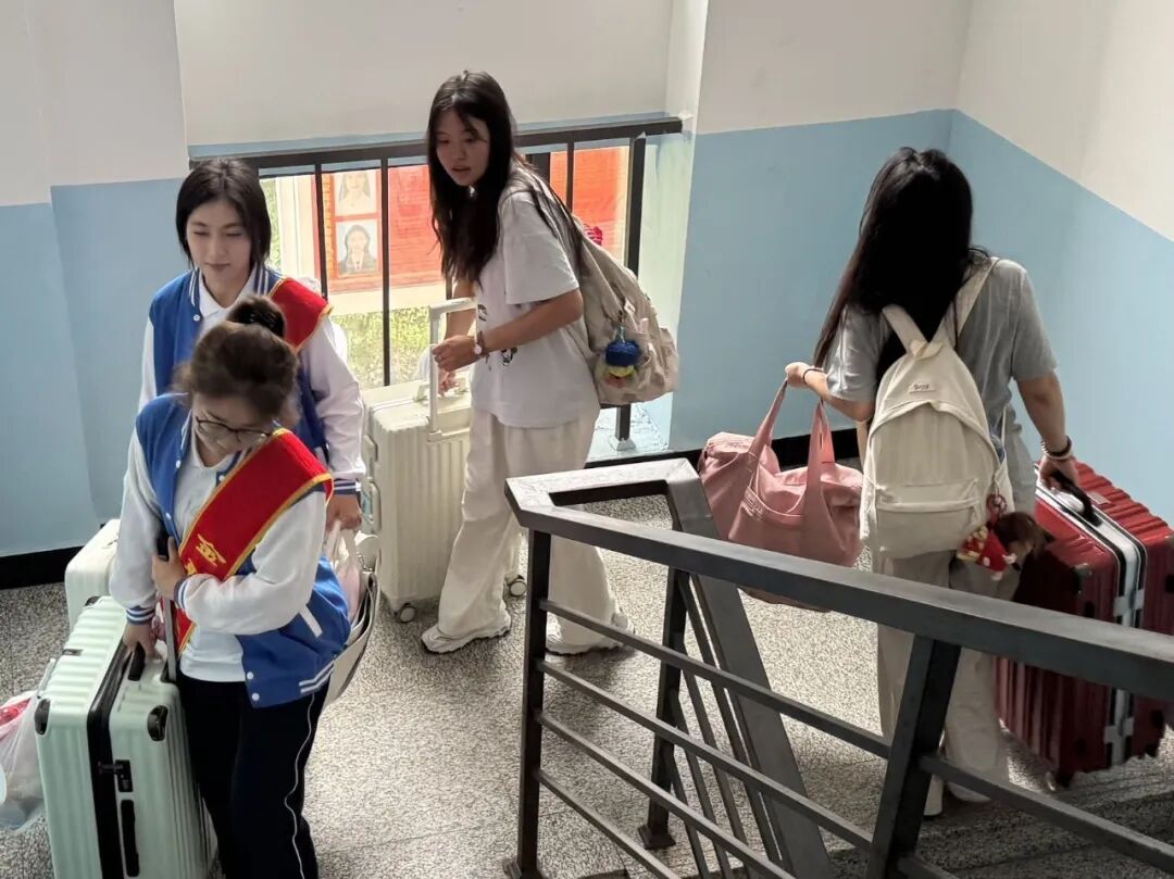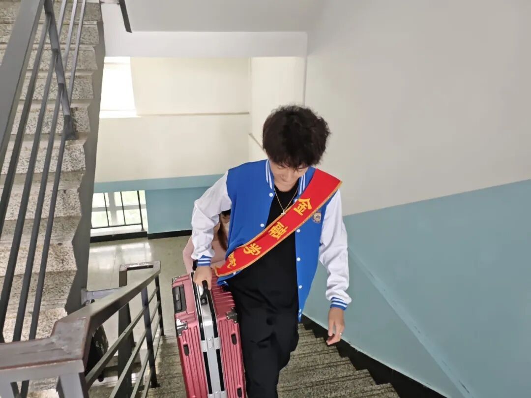 手提行李、肩扛包裹,迎新志愿者们化身“暖心搬运工”,一路护送2025级新生前往寝室。