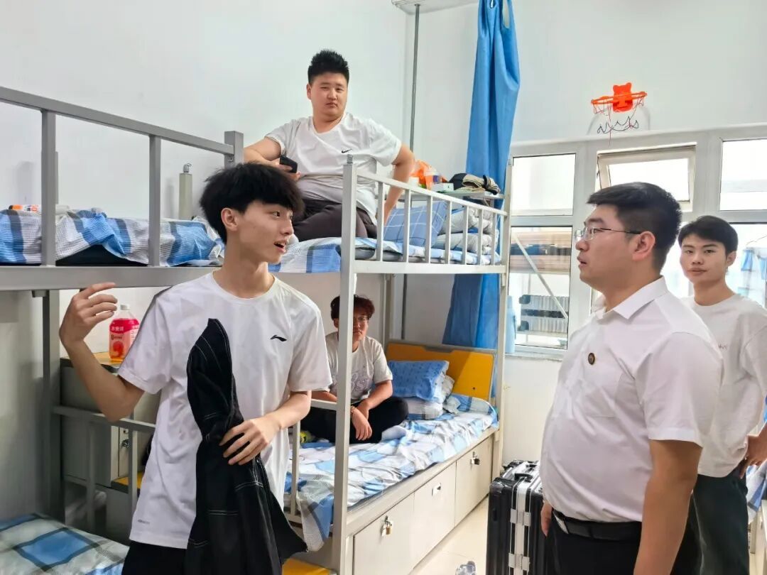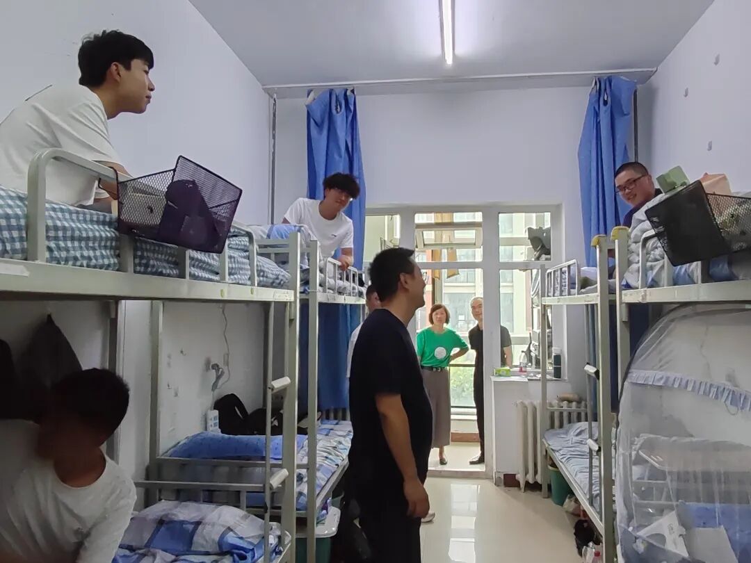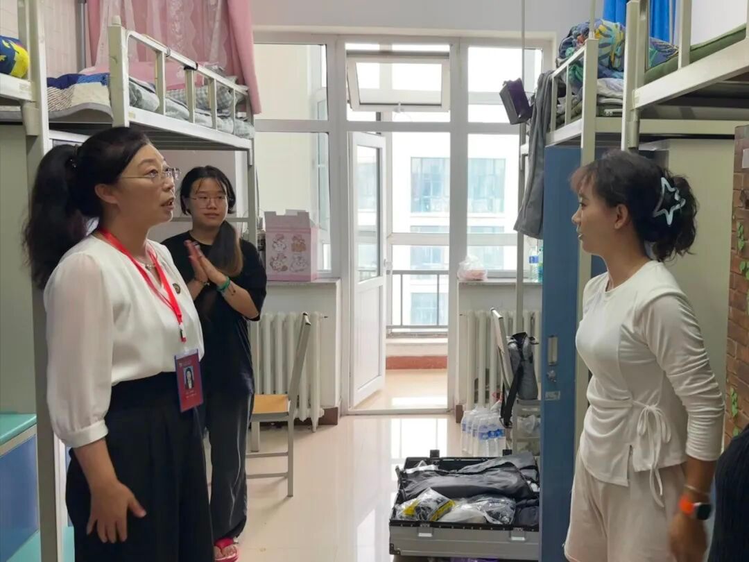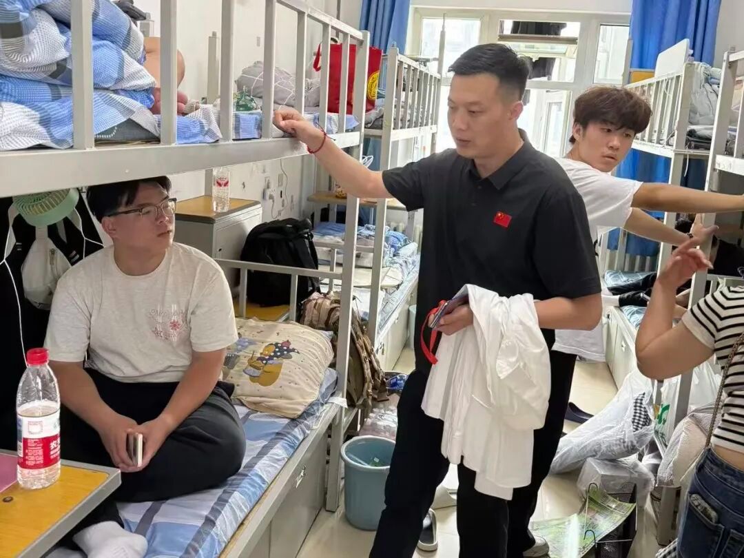每走进一间寝室,辅导员们都先与新生们亲切交谈,仔细询问大家从家乡来校的行程是否顺利、行李物品是否安置妥当、对寝室环境是否满意,一句句“刚到学校有任何不适应都可以找我们”“遇到问题随时和辅导员沟通”,瞬间拉近了与新生的距离。看到部分新生仍在整理行李,老师们还主动上前帮忙,手把手指导大家合理规划寝室空间,同时耐心倾听同学们提出的生活需求——无论是设施使用疑问,还是生活习惯适配问题,都逐一记录,并现场建立“需求—解决—反馈”闭环清单,承诺尽快为大家协调解决。