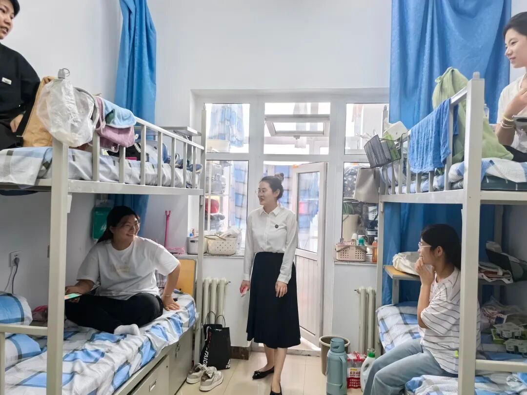 金秋送爽,新程启幕。8月30日,为让从全国各地奔赴吉林工商学院金融学院的新生们快速感受校园温暖、适应住宿生活,学院党委副书记李美婧,学团办主任孙殿春,副主任李秋颖,及辅导员杜婧舟、程鹏程、谢云超、周东石组成慰问团队,深入新生寝室一线,开展暖心走访慰问活动。