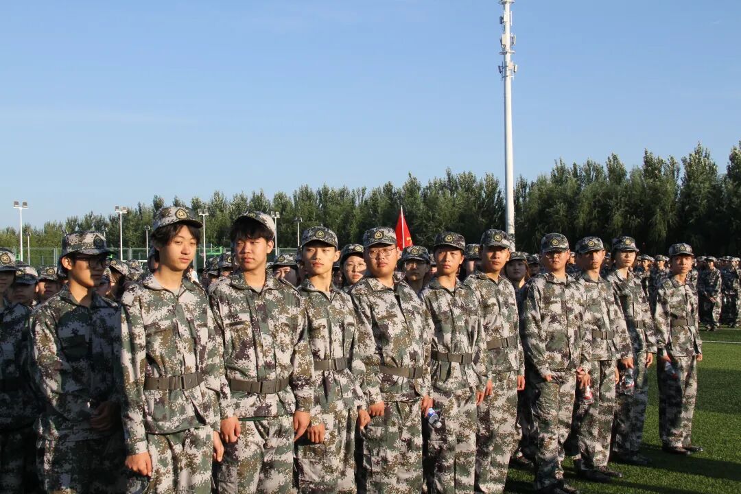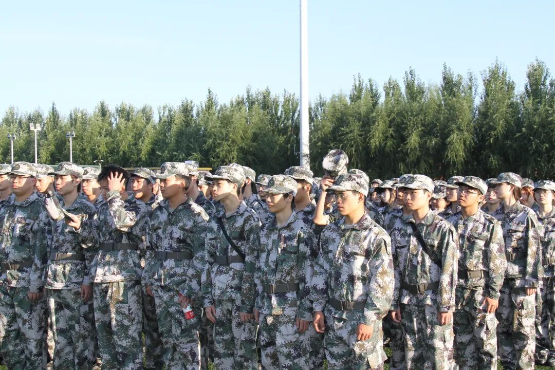 队列初定,同学们难免显得生疏。有人下意识地含着肩,有人脚尖没能对齐基准线,不少人目光紧盯着前方同学的后背,手在裤缝旁反复微调,默默确认摆放的高度与贴合度。直到指尖准确触到裤线的那一刻,神情里才透出对规范的郑重。