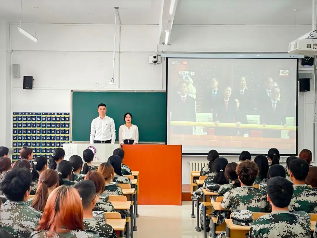 在纪念中国人民抗日战争暨世界反法西斯战争胜利80周年之际,9月3日,一场举世瞩目的大阅兵在北京天安门广场盛大举行。此次阅兵不仅是对那段波澜壮阔历史的深情回望,更是彰显国家实力、维护世界和平的有力宣言,承载着深厚的历史意义与时代价值。为深入贯彻爱国主义教育,增强师生的民族自豪感与使命感,金融学院精心组织全院师生共同观看这一盛典。