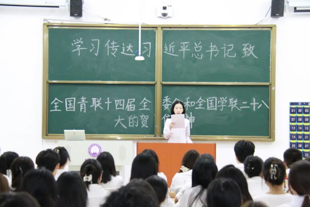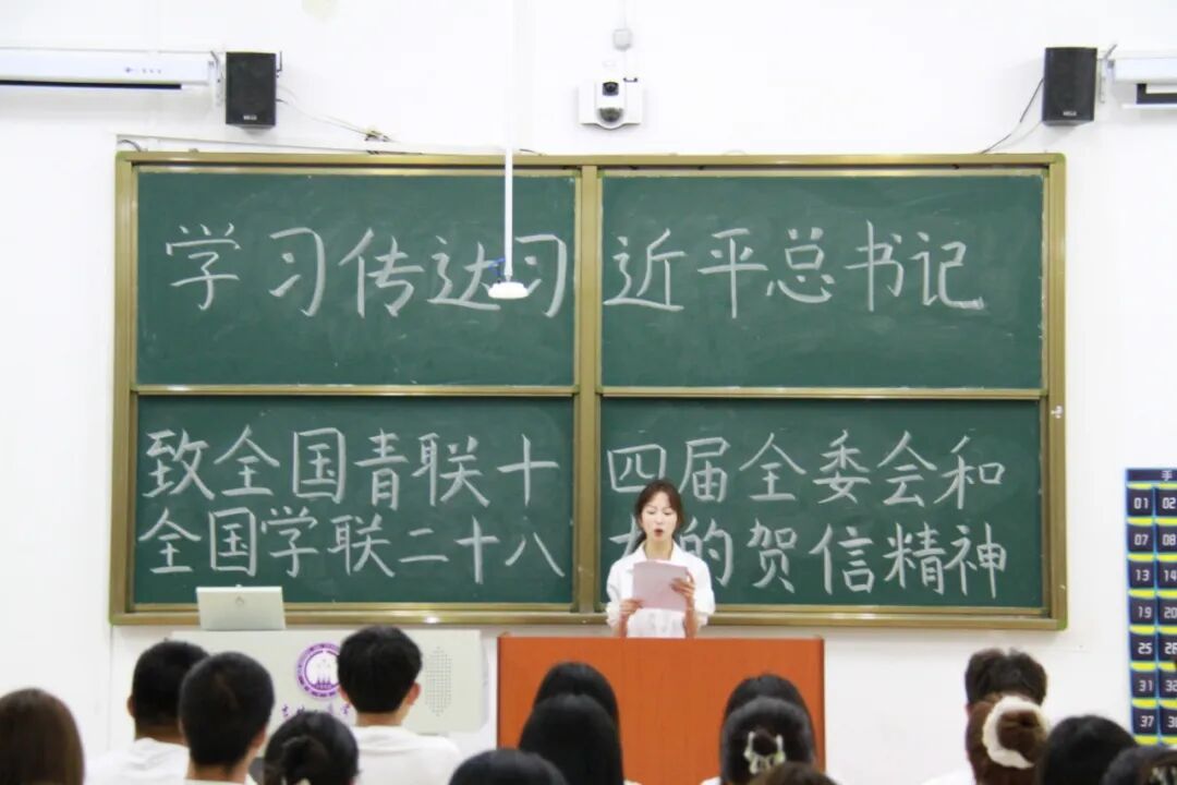 为深入学习贯彻习近平新时代中国特色社会主义思想,强化青年学子的理论武装,提升思想政治水平,9月4日,金融学院在博学楼B区104教室开展了以 “学习传达习近平总书记致全国青联十四届全委会和全国学联二十八大的贺信精神” 为主题的学习活动。金融学院“青马筑梦”学员及各班团干部参与了本次活动。