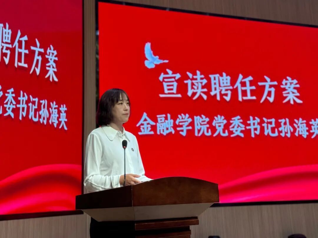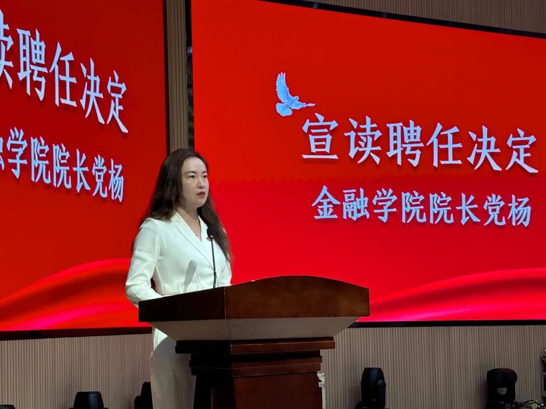 党杨宣读了《关于聘任耿琪等7名同志为金融学院学生思政导师的决定》,她强调,人才培养既需要扎实的专业素养作支撑,更需要坚定的理想信念、过硬的政治品格作根基。受聘导师专业方向涵盖党建管理、教学管理、高等教育研究、思政理论、服务地方经济发展、学生职业生涯规划等多个领域,他们带来的丰富育人经验,将为金融学子搭建起思政素养与专业能力同频共振的成长平台。