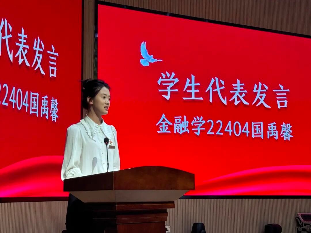 学院22404班国禹馨作为学生代表发言,她表示,思政导师的到来,就像为金融学子点亮了一盏“引路灯”,金融学子一定会珍惜这份机会,在思政引领下学好金融知识、锤炼品德修为,不辜负学院和导师的期望,成长为有理想、能担当的新时代青年。