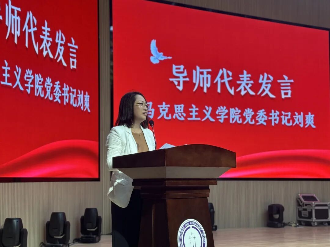 刘爽作为受聘导师代表上台讲话,她表示,传播马克思主义科学理论、用党的创新理论滋养青年心灵,是高校教师的职责所系,更是使命所在。全体思政导师将始终把铸魂育人放在首位,把思想理论转化为滋养心灵的活水,帮大家解开成长中的思想困惑,做好“学生身边的倾听者、学生成长路上的同行人”。