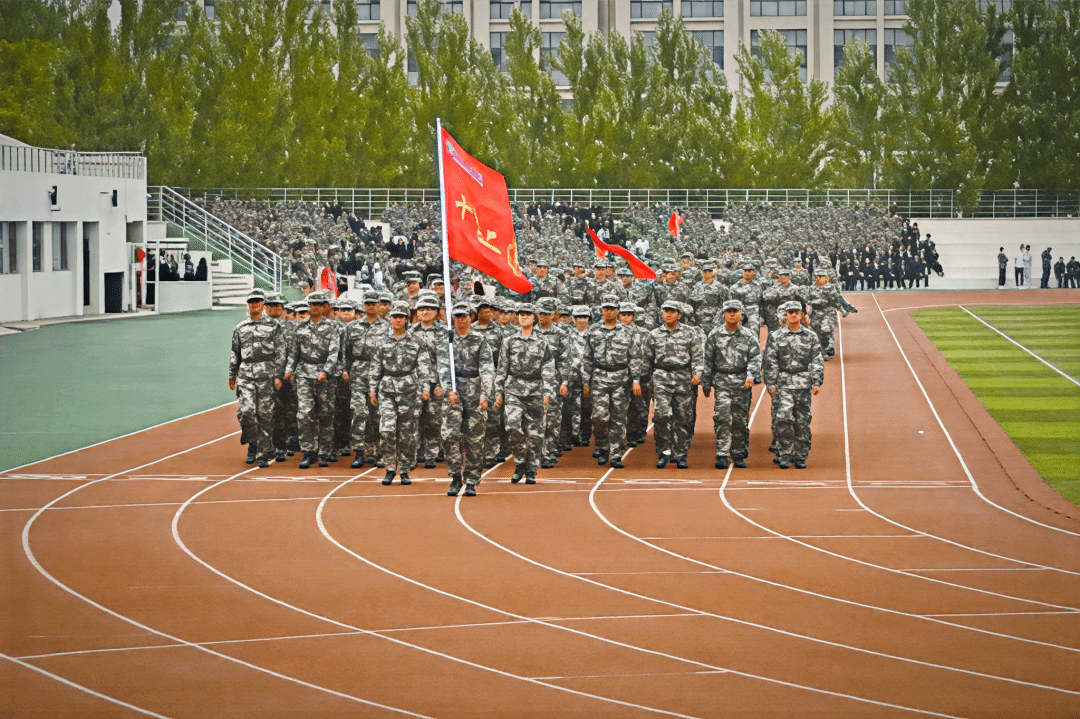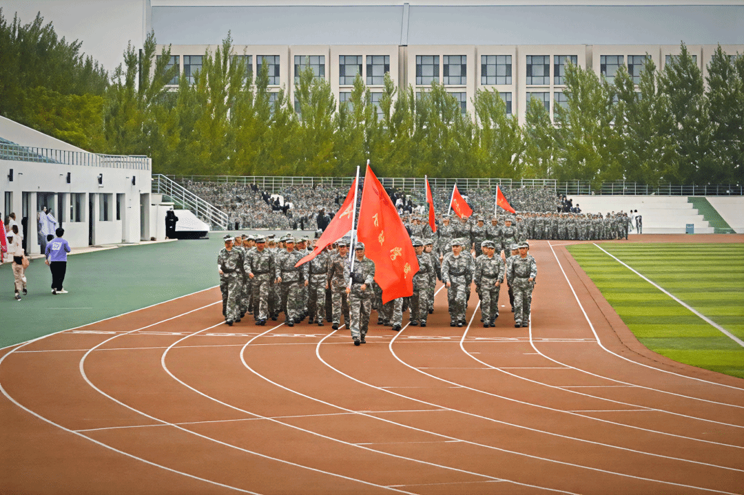 看那标准的队列始终在场上绽放光芒它是纪律的象征展现着新生过硬的训练素养当分列式走过指定区域呐喊声激荡全场这一场军训汇报是青春的答卷是成长的见证
