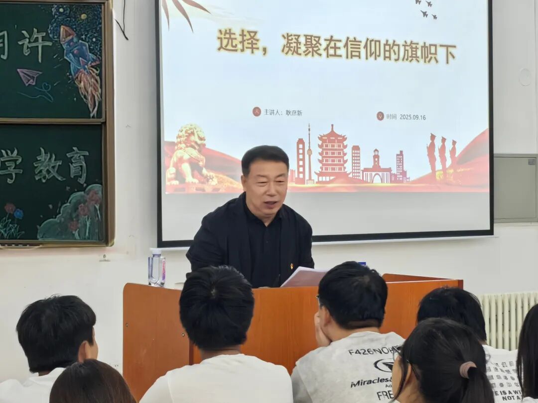 耿彦新结合马克思主义信仰的理论根基,援引近现代以来中国青年在民族独立、国家建设、改革发展进程中坚守信仰、担当使命的鲜活案例,让新生直观理解 “信仰不是抽象口号,而是扎根现实的精神坐标”。耿彦新指出,在服务实体经济、防范金融风险、推进普惠金融的时代背景下,金融学子的信仰可转化为坚守职业伦理的底线、助力国家金融安全的担当、用专业能力服务社会发展的追求。同时,他鼓励新生,既要主动参与马克思主义理论学习活动,夯实信仰的思想根基,也要在金融领域社会实践中检验认知,让个人成长始终与国家发展同频共振。