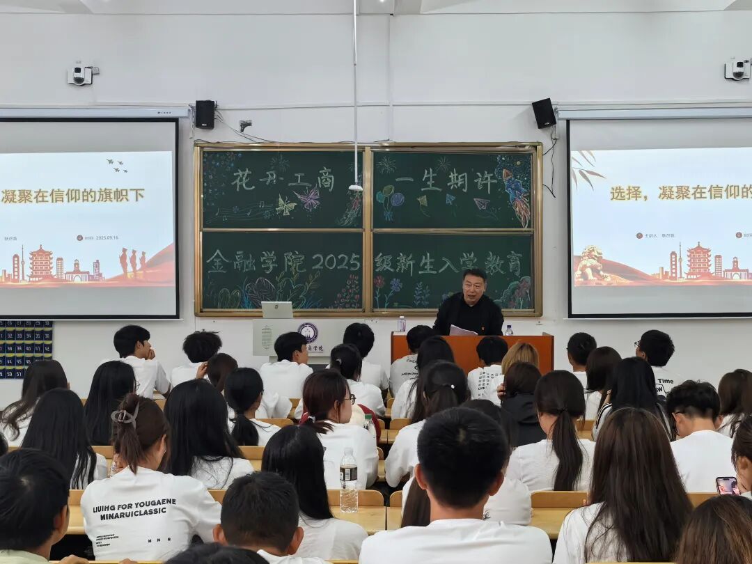 为引导新生坚定理想信念,树立远大人生目标,9月15日—16日,金融学院组织开展了“花开工商,一生期许”——2025级新生入学教育,马克思主义学院副院长、我院思政导师耿彦新为2025级新生进行了以“凝聚在信仰的旗帜下”为主题的理想信念教育,学院党委副书记李美婧主持本次活动。
