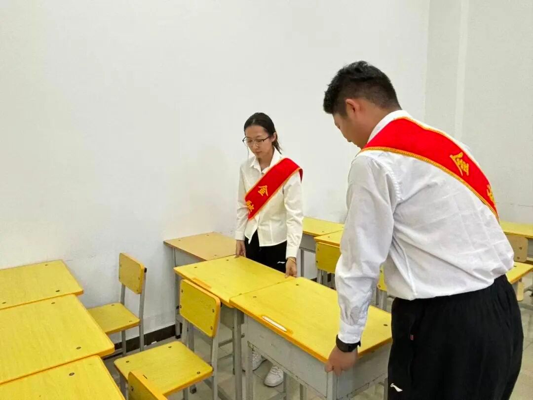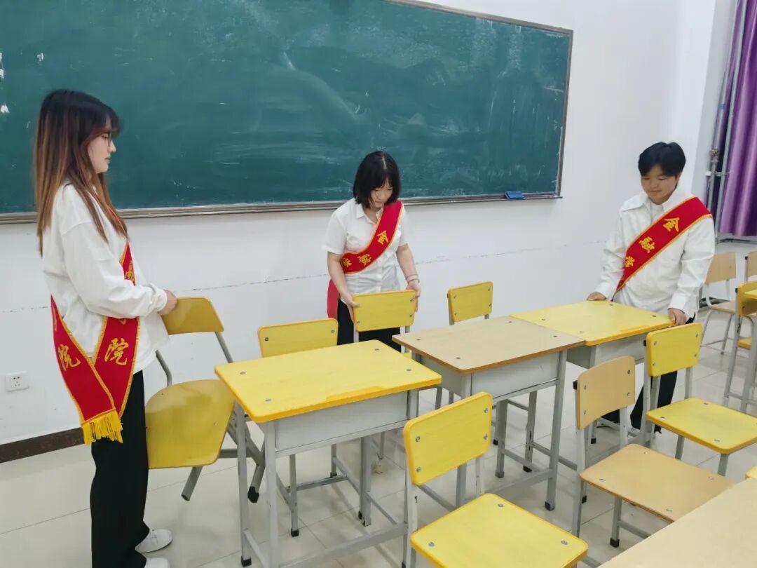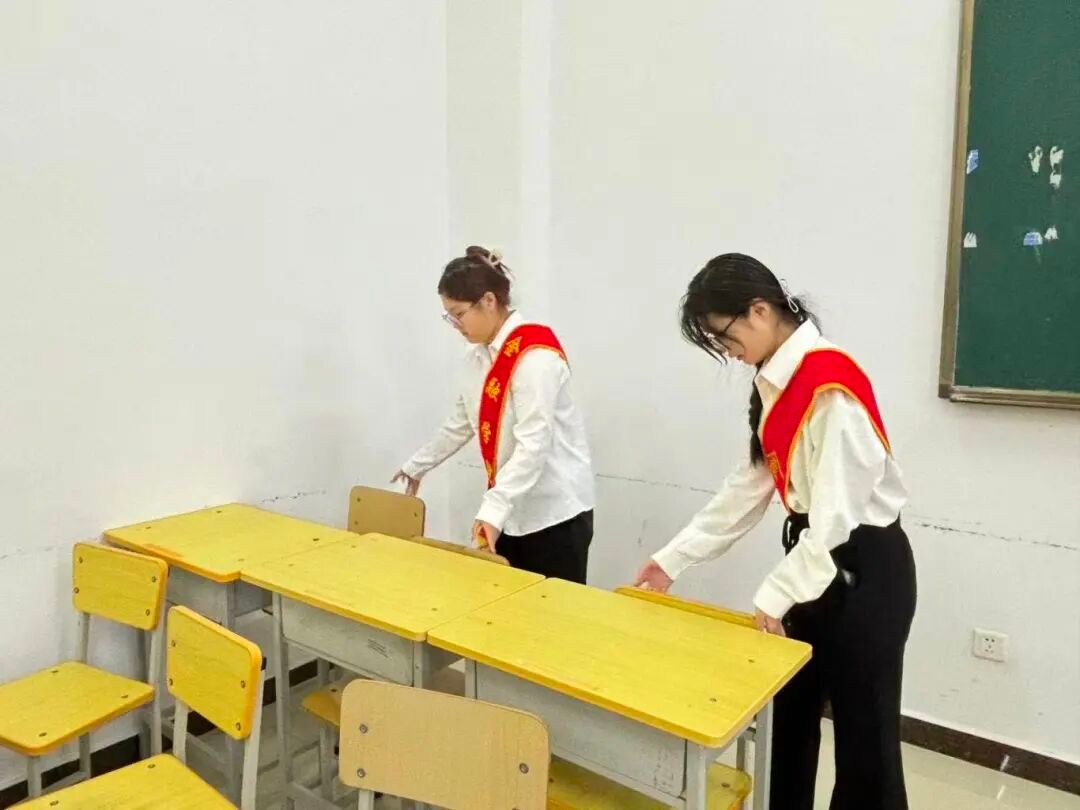 大家来到自习室后,迅速分组、各司其职,主动开展教室内桌椅规范摆放工作。针对课后教室内出现的桌椅偏移、排列散乱等情况,大家逐排逐座进行调整,整齐归位的桌椅不仅让教室环境焕然一新,更让“全心全意为人民服务”的宗旨在细微处落地生根。