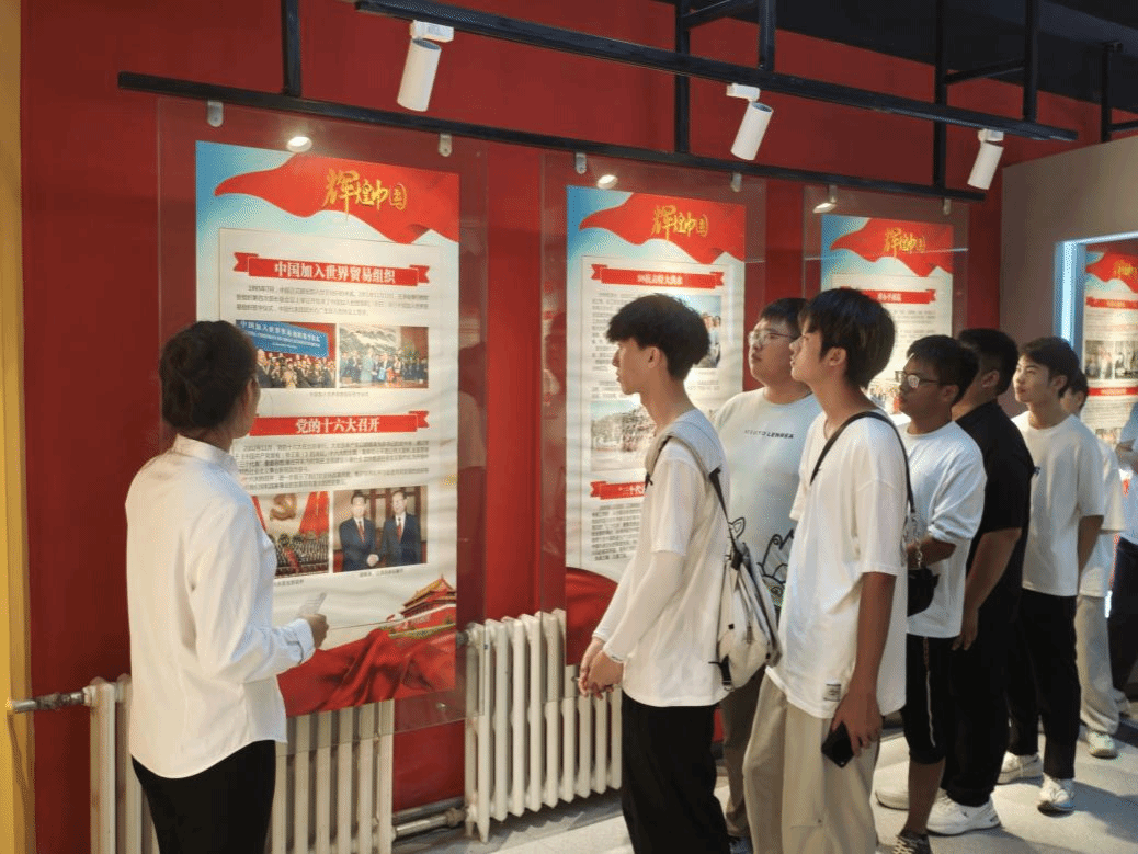随着参观推进,同学们的目光自然转向党的发展历程与国家建设成就。在党的历次全国代表大会成果展前,同学们顺着时间线梳理出党带领人民走向富强的奋斗脉络,也学到了“实事求是、与时俱进”的发展理念;驻足中国加入世界贸易组织的展区时,通过珍贵的签约资料和发展数据,大家清晰的了解到国家融入世界、推动开放发展的重要意义,也渐渐明确:新时代青年需要具备开放视野,更要扛起建设国家的担当。整个过程中,同学们或认真聆听讲解,或驻足展品前交流感悟,把历史的厚重与精神的传承悄悄装进心里。