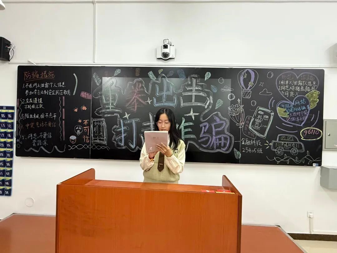 各班级团支书带领同学们开展主题活动,学习防范网络诈骗,筑牢校园安全意识。学生们深刻体会到防诈的重要性与紧迫性,时刻保持警惕,识别常见诈骗手段,不贪图小利,保护好个人信息重要性,并进一步主动向身边人宣传反诈知识,共同守护财产安全,让防诈意识成为日常习惯。