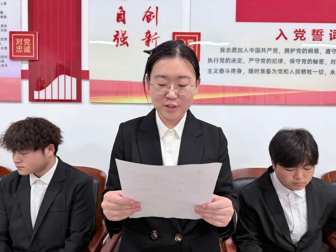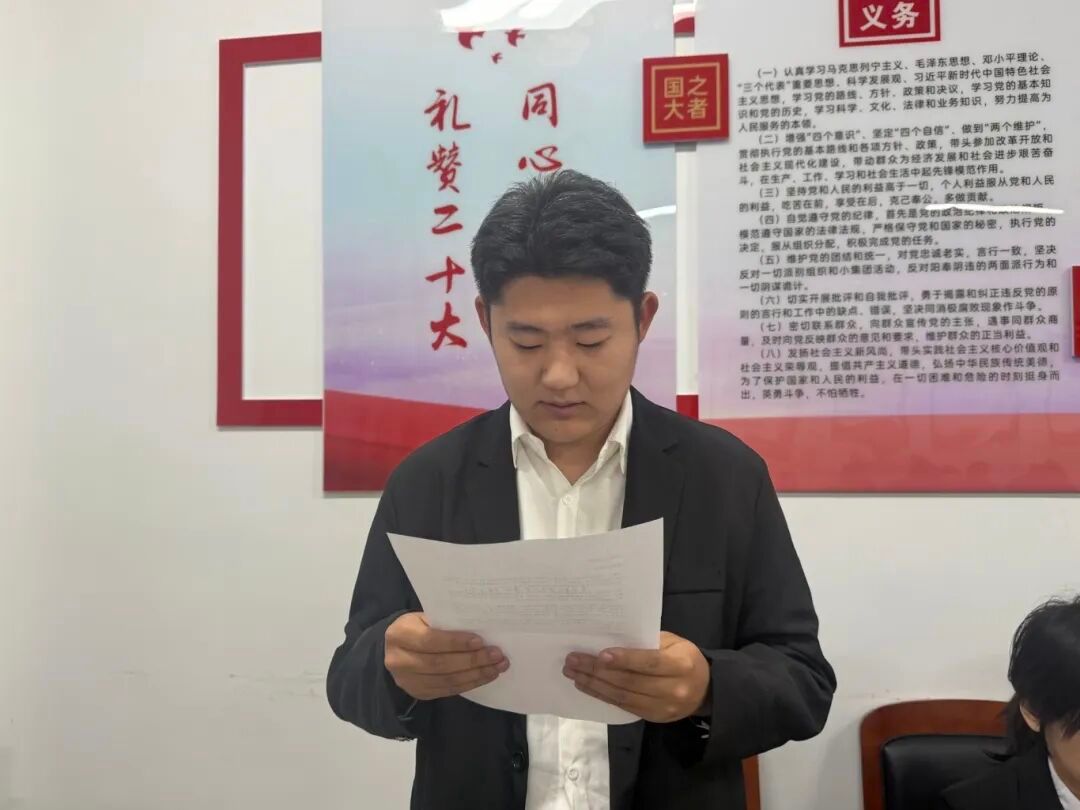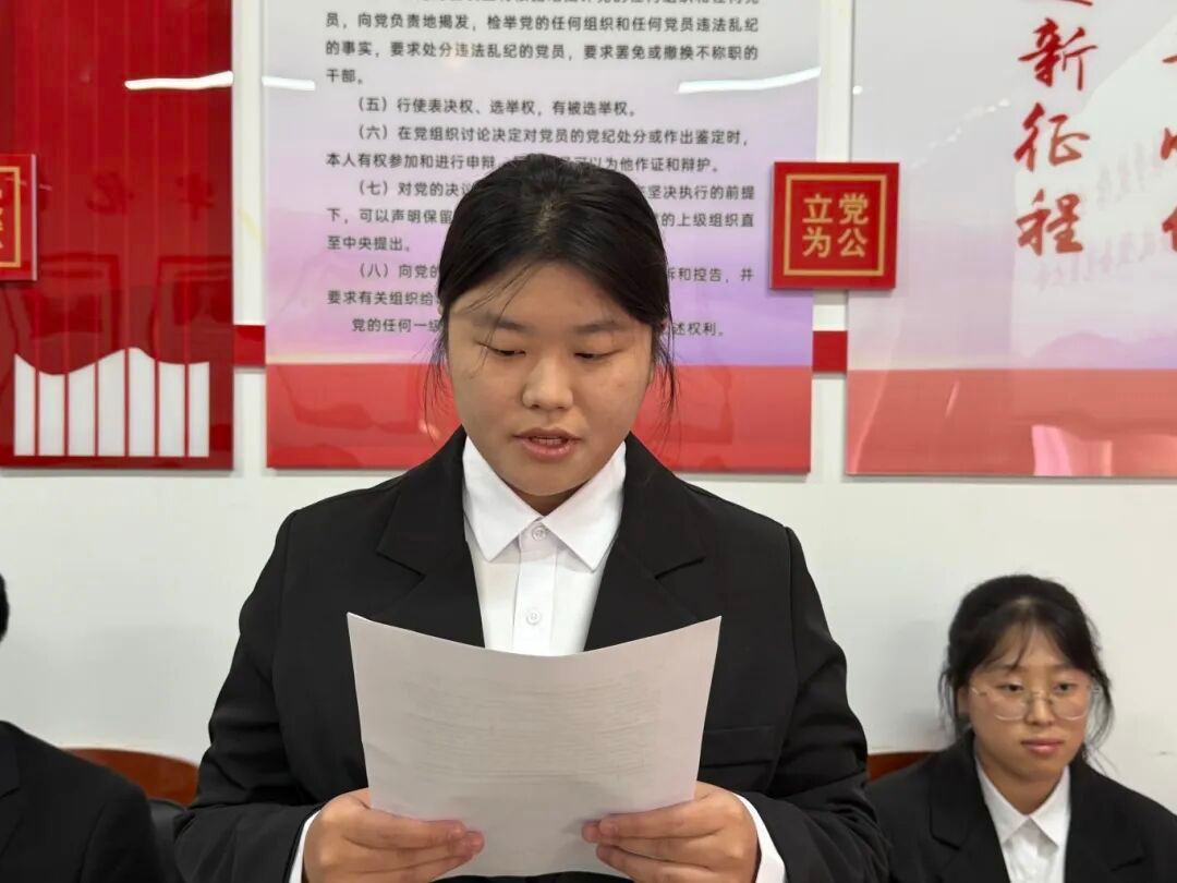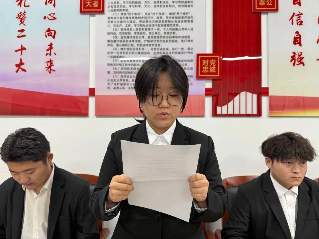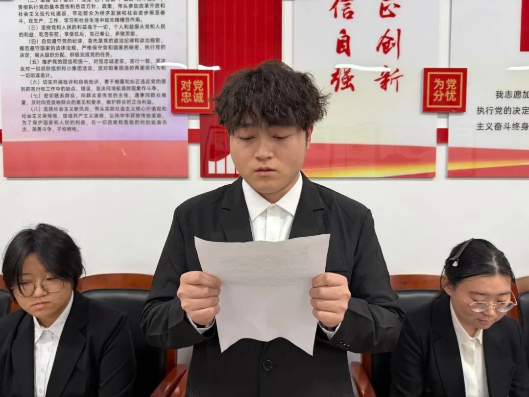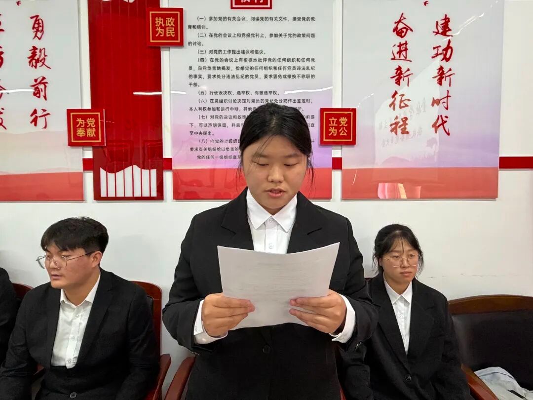 党支部组织委员杜婧舟同志宣读支部大会决议,同意接收李俊辰等10名同志为中共预备党员。