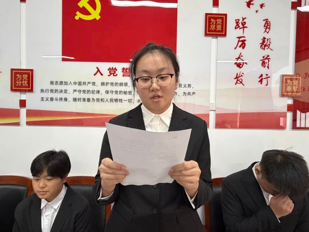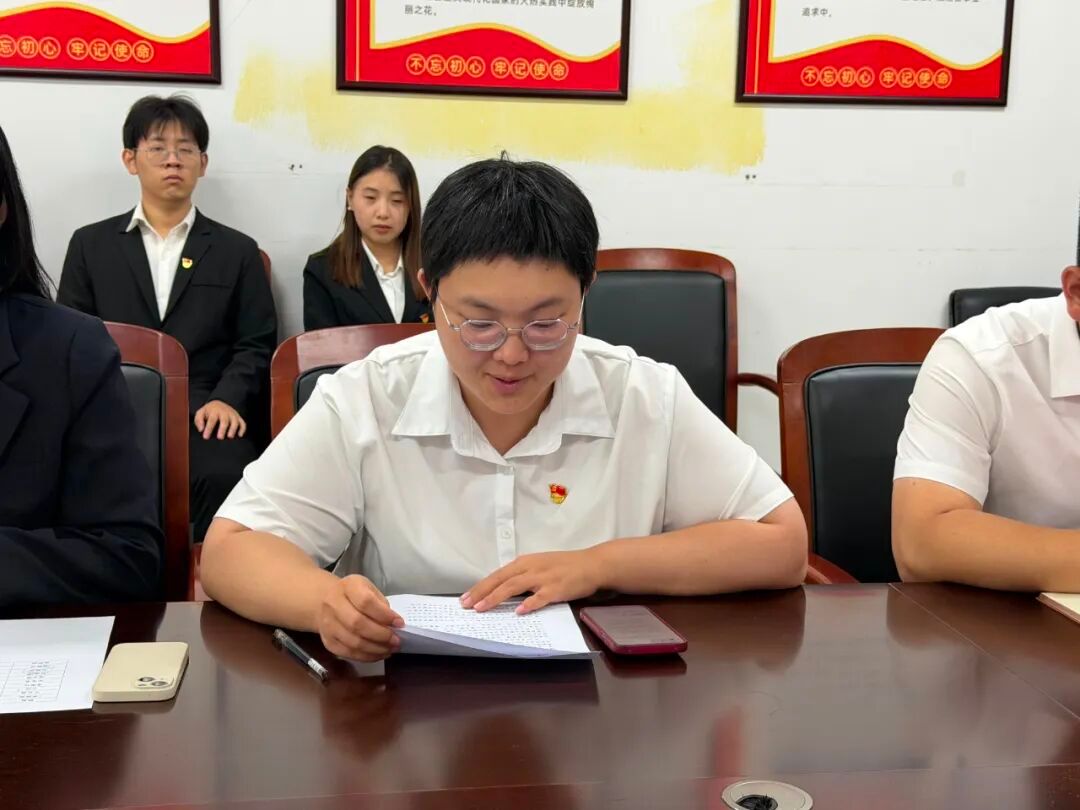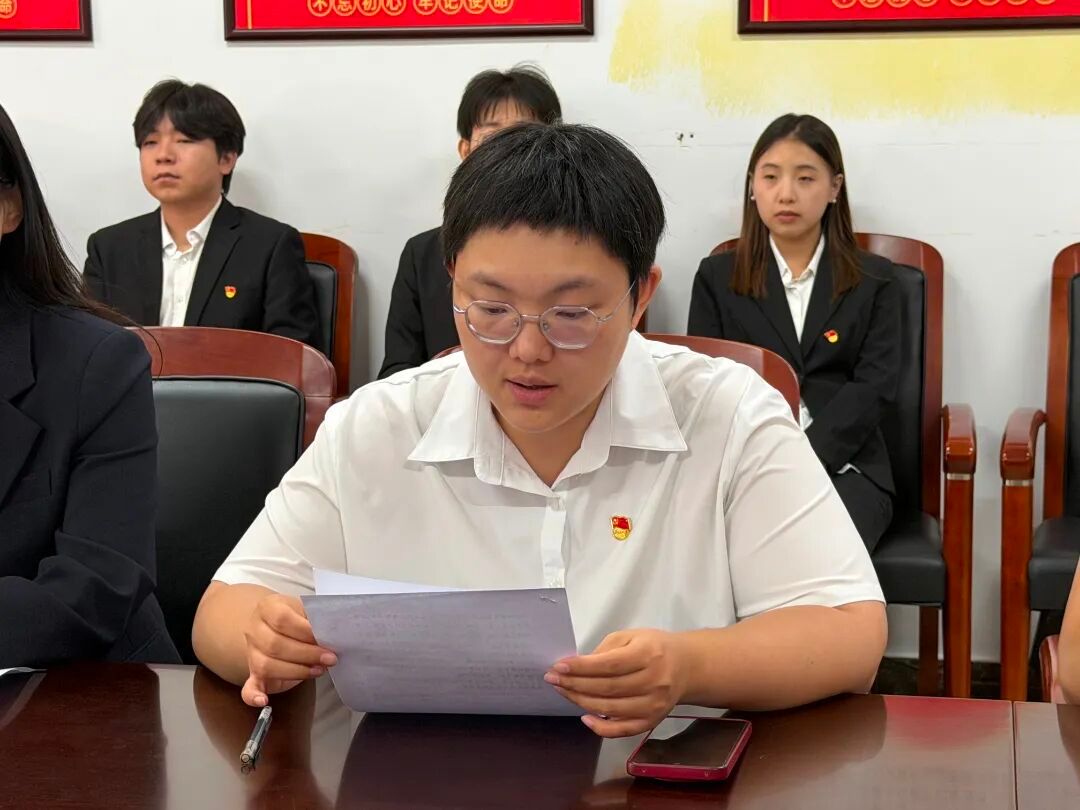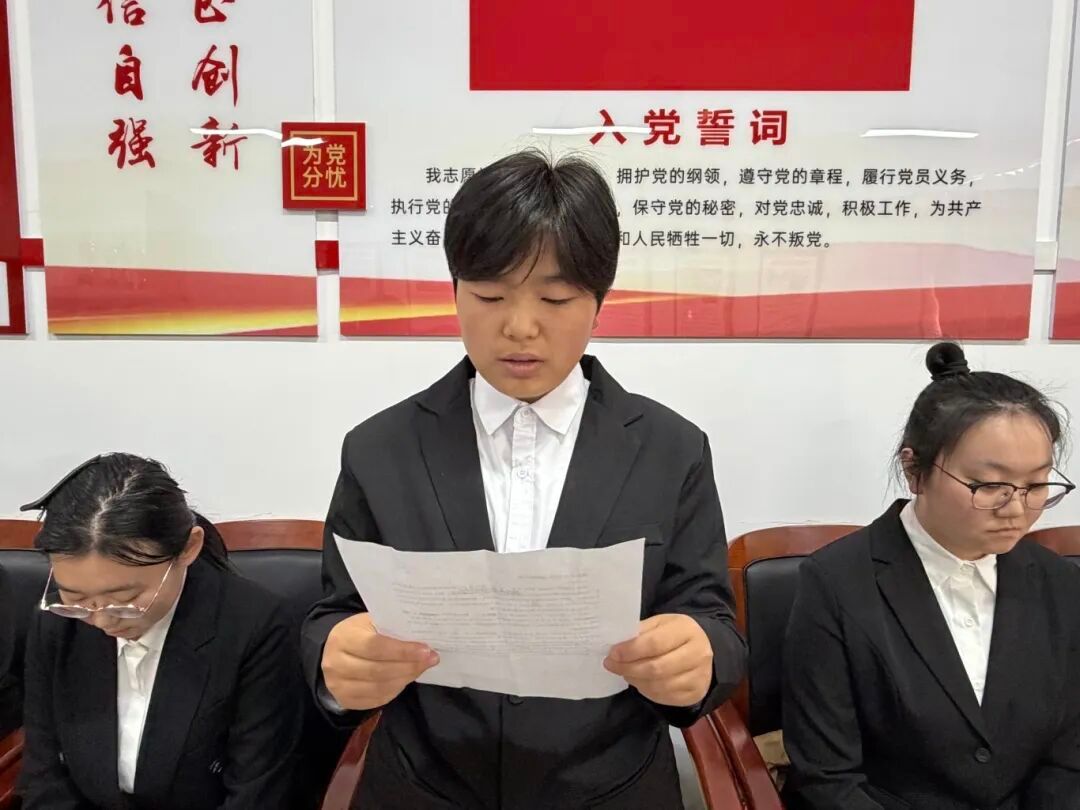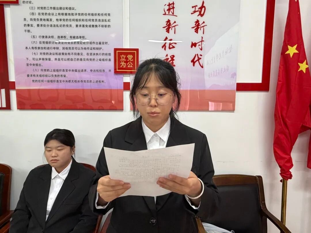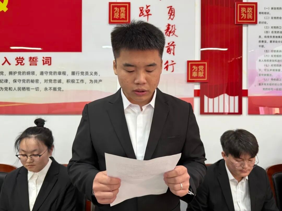 党支部组织委员杜婧舟同志宣读支部大会决议,同意接收李俊辰等10名同志为中共预备党员。