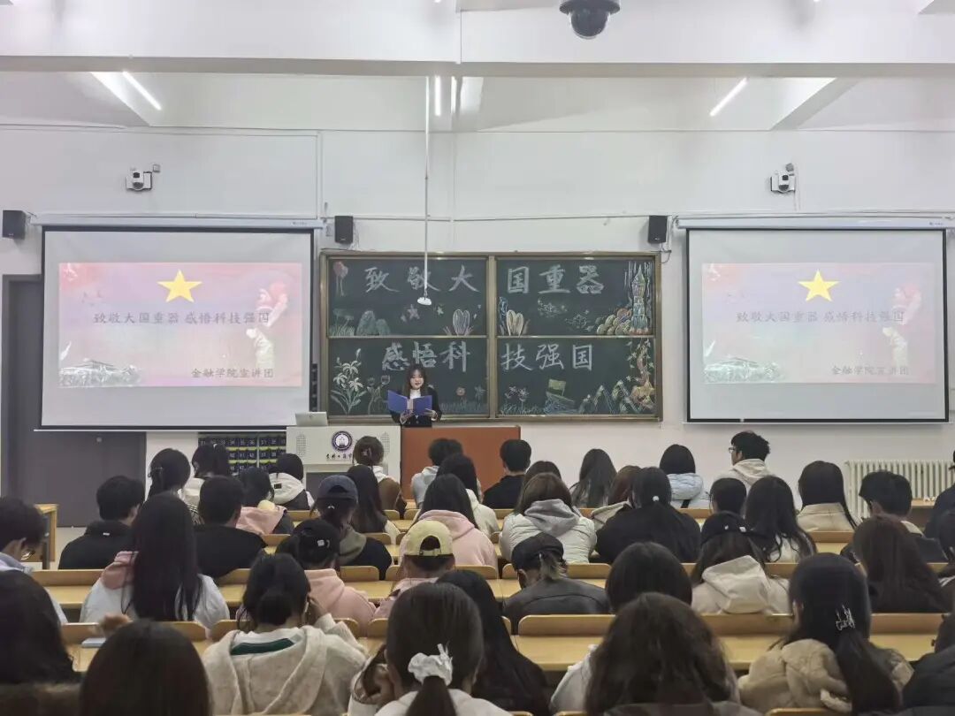 为深化青年学生对科技强国的认知,激发专业学习与国家发展需求的关联意识,10月16日,金融学院“青葵”语言社团宣讲团在博学楼B区101教室开展了“致敬大国重器,感悟科技强国”宣讲活动。