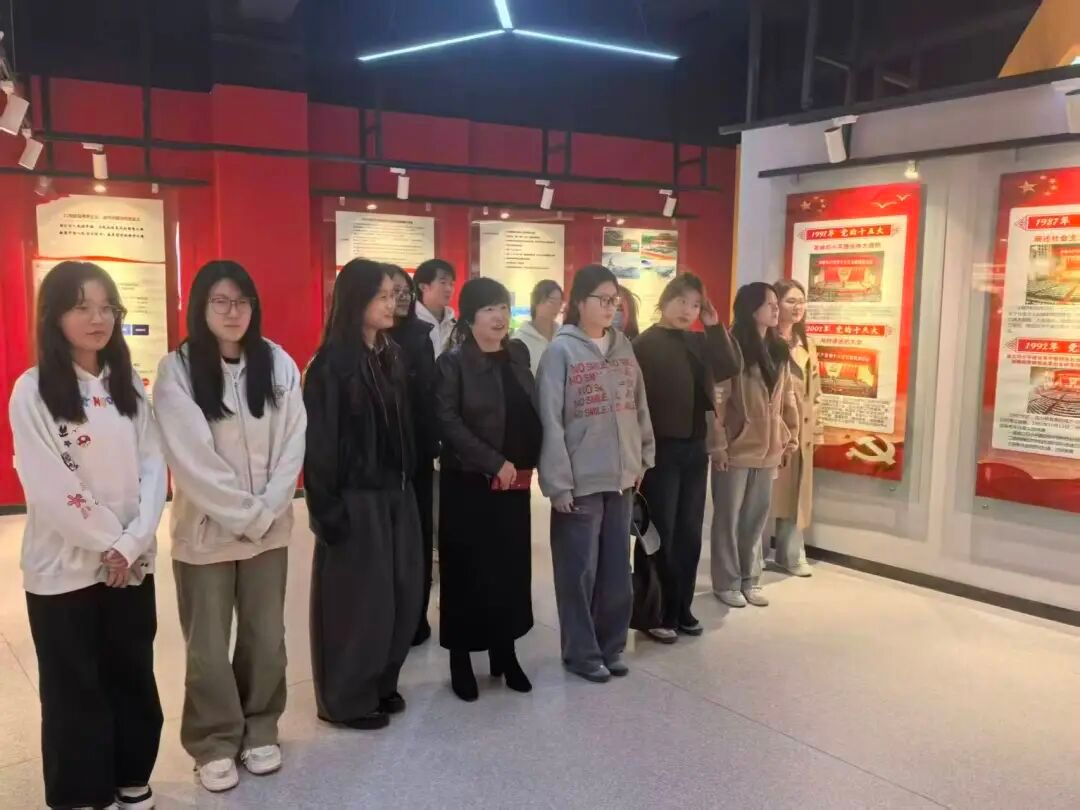 展厅内,团队成员通过图文展板、实物展品与互动装置,系统了解青马工程的育人成果,深入感悟红色文化内涵;过程中,大家主动交流感悟,将绿色金融科研使命与青年责任担当紧密联结,明确学术研究的价值方向。