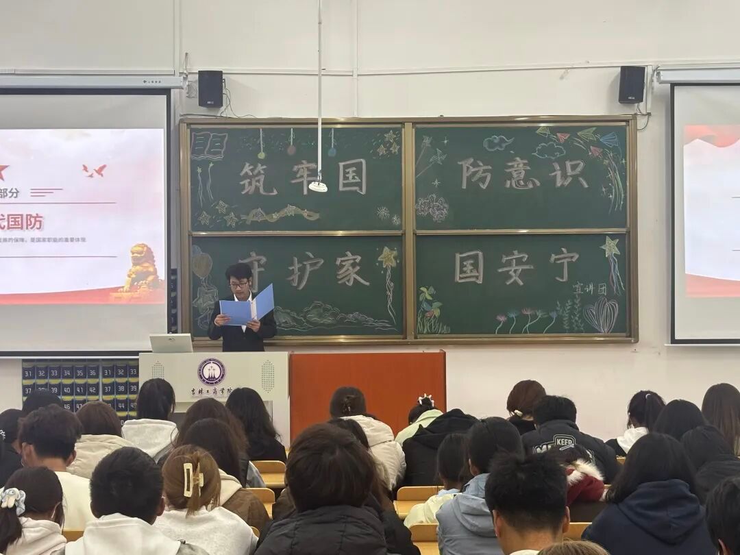 为深刻贯彻国防安全教育,强化青年学子家国担当,10月23日,金融学院“青葵”语言社团宣讲团在博学楼B区101教室举办主题为“筑牢国防意识,守护国家安宁”的国防教育主题宣讲活动。本次活动由宣讲团成员宿桐主持。