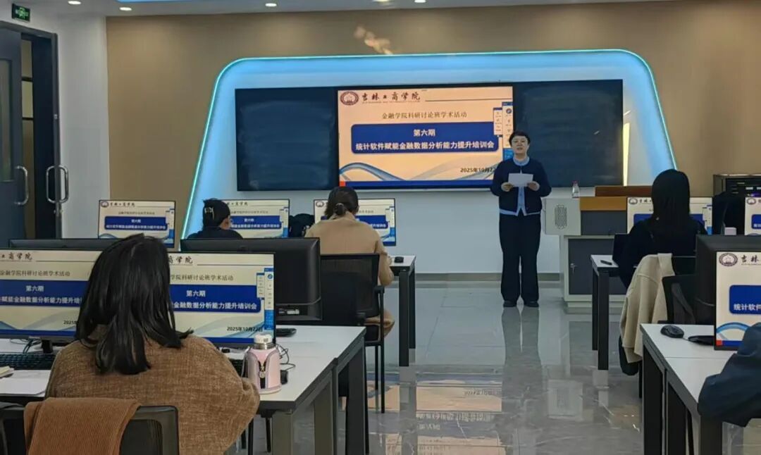 为深入贯彻落实国家关于推动高等教育高质量发展,加强有组织科研的决策部署,积极响应学校提升青年教师科研创新能力的总体要求,金融学院于2025年10月22日下午在三教507金融科技实验室成功举办第六期科研讨论班活动“统计软件赋能金融数据分析能力提升培训会”。本次培训会特邀长春工业大学数学与统计学院刘新蕊老师担任主讲,金融学院付艳副院长主持,学院全体青年教师参加。