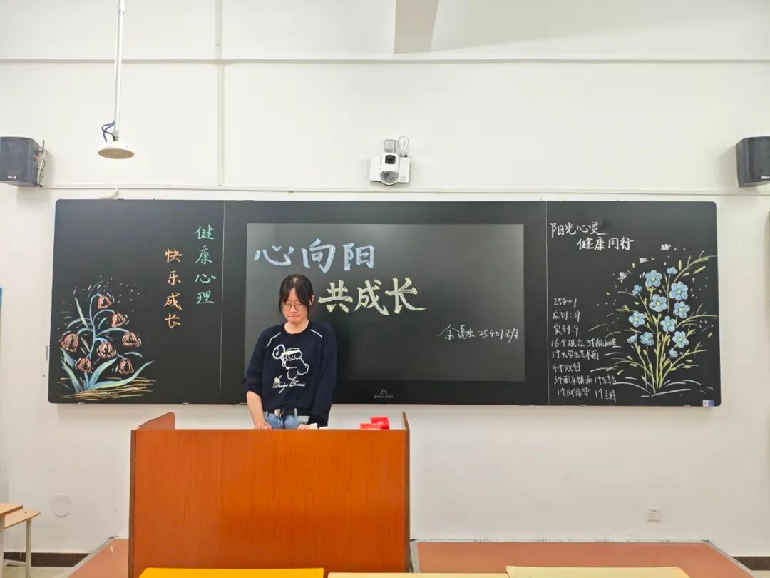 班会上,各班级负责人精心布置色彩温馨的板报,制作详实有趣PPT;心理委员们结合丰富的心理健康知识和生动案例,深入浅出地讲解压力管理、情绪调节等实用知识。许多同学表示压力得到了有效释放,班级凝聚力明显提升,更掌握了实用的心理调适技巧。