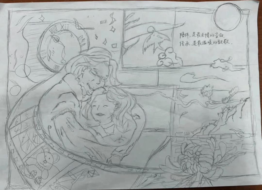 “孝为德之本,敬乃礼之先。”学生们以画笔勾勒长辈的容颜,每一笔都倾注深情,生动描摹了亲人的形象,在创作中体悟家庭的温暖,感悟孝道的真谛。这些画作是艺术表达,更是对中华优秀传统文化的自觉传承,为尊老敬老的美德注入了青春力量,让孝与敬意成为连接代际的温情纽带。