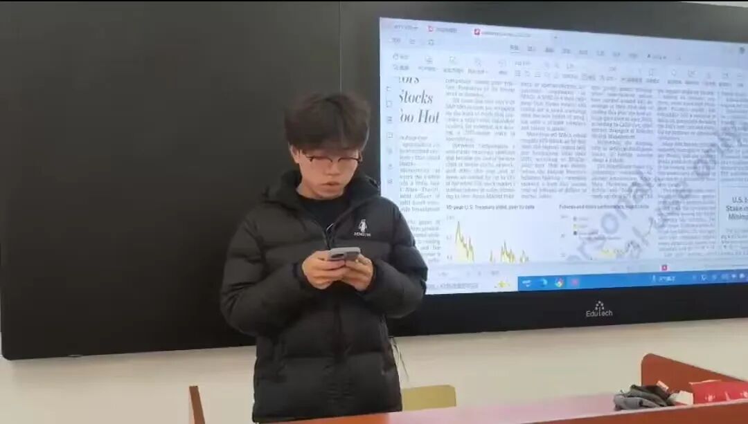 活动期间,学院为同学们提供了《华尔街日报》电子版的精选内容,涵盖全球股市、宏观经济、产业趋势等信息,帮助同学们快速把握市场脉搏。大家在班级里分享早读心得,营造了积极向上的学风氛围。