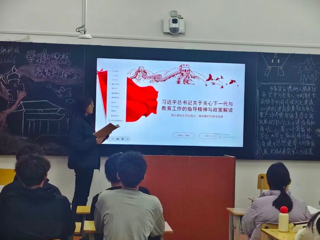本次活动中,各班学生踊跃参加,积极参与板报设计,将政策要义融入板报内容之中。主讲人娓娓而谈,系统地将政策理论内涵绘声绘色地宣讲给同学们,帮助同学们深化理论认知,凝聚思想共识,将学习成果内化为能力,外化为行动,实实在在地践行教育强国精神。