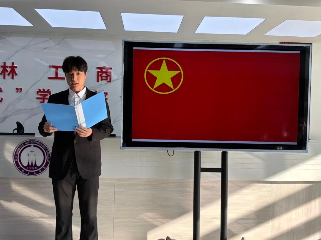 徐铭澳代表新发展团员发言表态,他表示,新发展团员将在思想上、行动上严格自我约束,在集体中发挥先锋模范作用,带动财政金融学院学子共同进步。