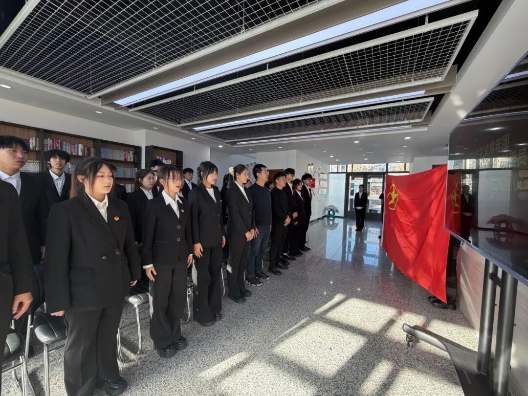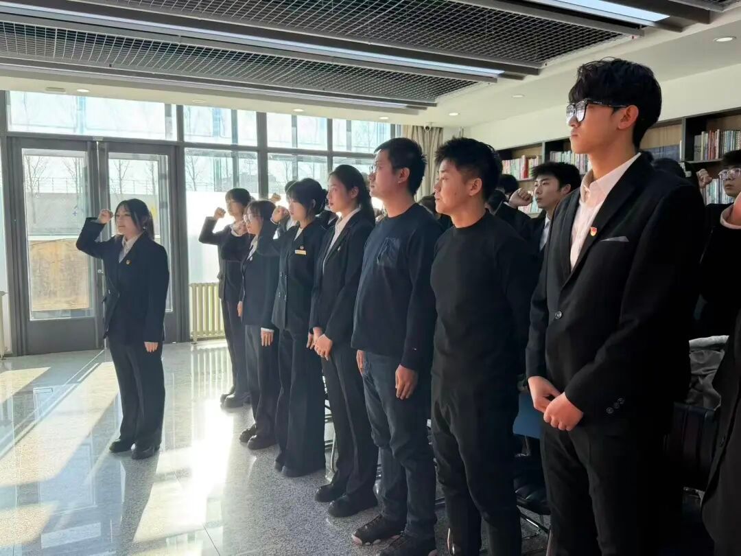 全体团员面向团旗,右手紧握,置于额旁,在分团委宣传部负责人韩佳颐的带领下进行了庄严宣誓:“我志愿加入中国共产主义青年团,坚决拥护中国共产党的领导,遵守团的章程,执行团的决议,履行团员义务,严守团的纪律,勤奋学习,积极工作,吃苦在前,享受在后,为共产主义事业而奋斗。 ”