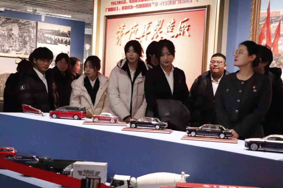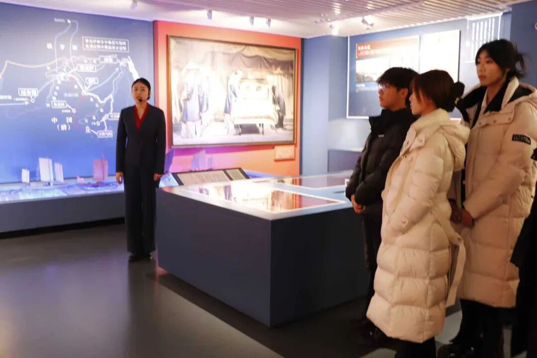同学们踏入展馆,首先映入眼帘的便是杨靖宇支队的旗帜,历经岁月洗礼的红色印记令人心生崇敬,深切体悟革命先辈的家国赤诚与无畏担当。在讲解员引领下,大家穿行于各个展区,一件件展品、一份份史料,诉说着东北儿女在民族危亡时刻呼应“一二·九”爱国浪潮、坚守家园的热血过往。同学们驻足凝视史料实物,聆听抗争岁月往事,真切感受黑土地孕育的不屈风骨,读懂东北青年的责任担当。讲解员结合本地革命历史梳理时代脉络,让大家明晰东北既是抗联浴血奋战的英雄土地,也是抗美援朝的重要后援地,这片热土不仅镌刻着抗争记忆,更作为汽车、电影、航天事业的摇篮,在时代征程中勇毅前行。大家在回望历史中感悟爱国精神内涵,坚定传承红色基因、勇担时代重任的信念。