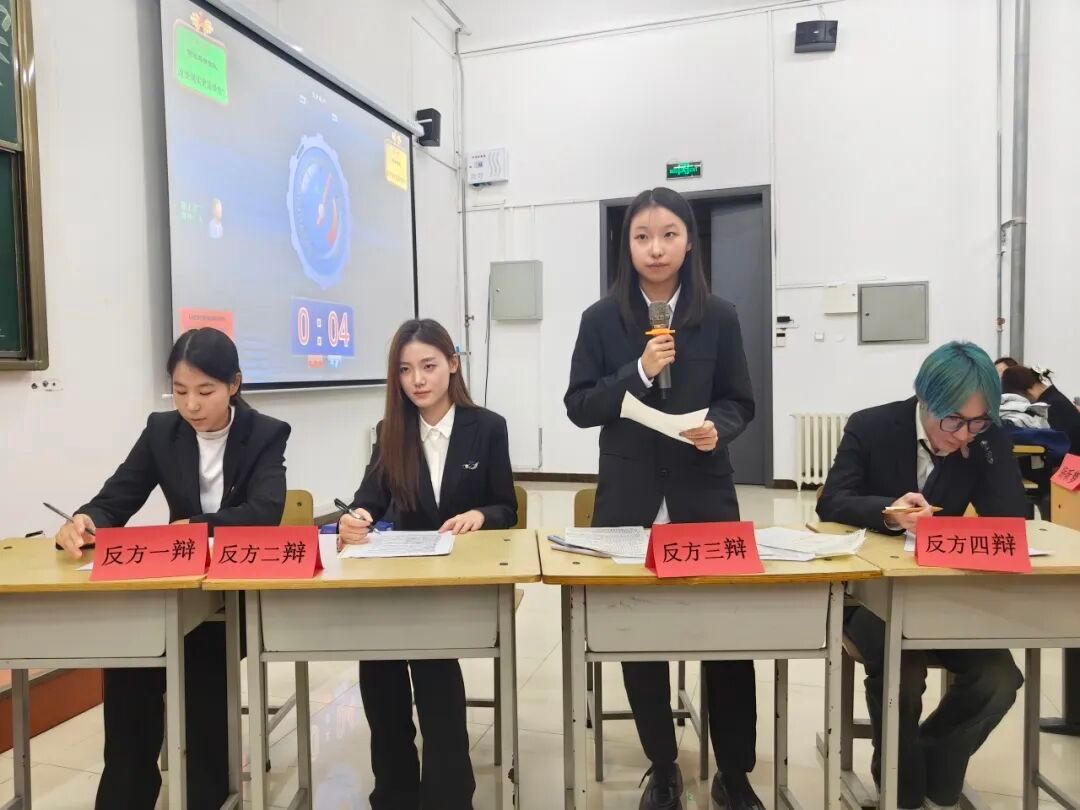 决赛现场氛围热烈而紧张,正方选手为投资学25409班代表团,反方选手为保险学25407班代表团,辩题为“改变现实更需要勇气/接受现实更需要勇气”。正反双方围绕辩题展开深度博弈。立论环节条理清晰、观点鲜明,精准搭建论证框架。驳论阶段针锋相对、直击要害,尽显思维交锋魅力。自由辩论环节你来我往、言辞犀利,在攻防之间展现扎实的知识储备与快速反应能力。总结陈词环节凝练要点、升华主旨,为整场辩论画上完整句号。