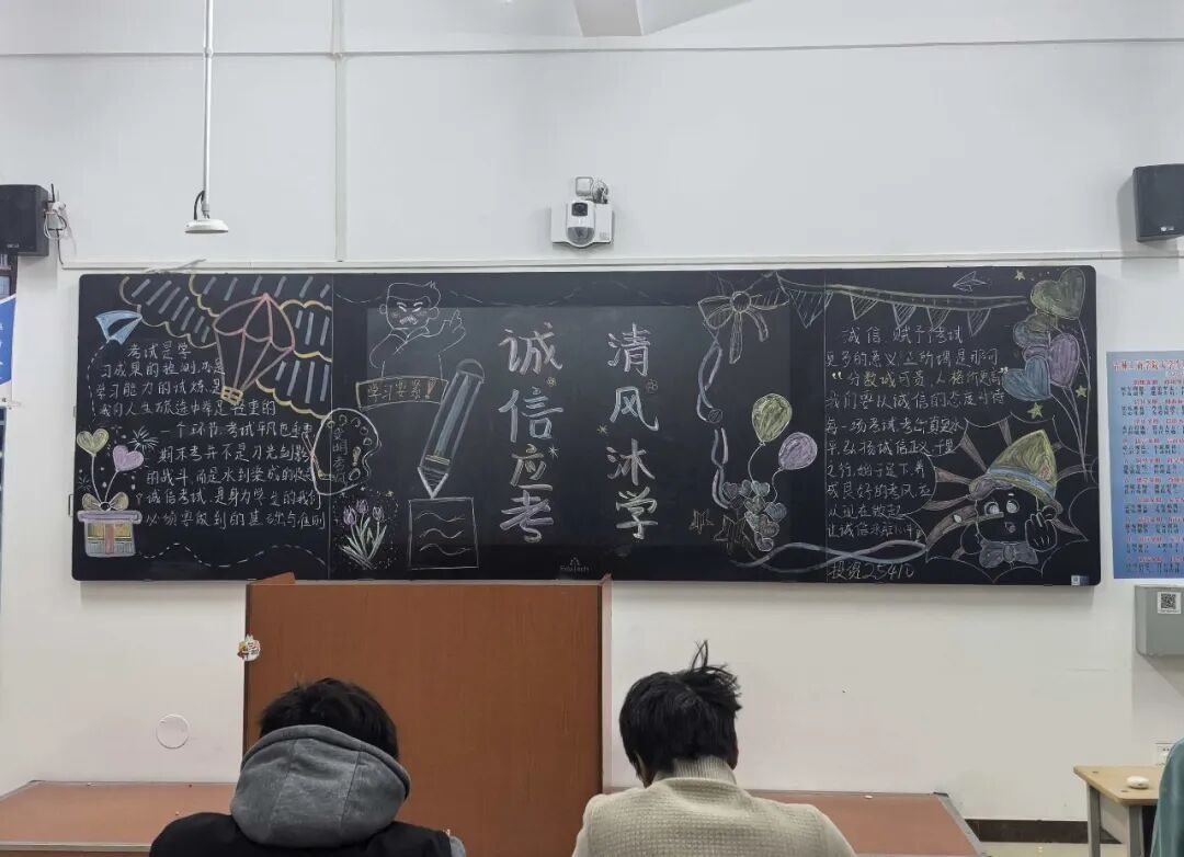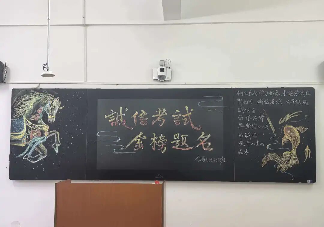 本次活动围绕诚信考试主题进行板报创作。各班同学积极参与、精心设计,以手绘为主要形式,通过生动的图画和有力的文字,传达出对诚信应考的理解与承诺。板报内容紧扣主题,形式多样,既展现了同学们的创意与协作能力,更在创作过程中深化了对考风考纪的认识。活动注重过程育人,在筹划、绘制与展示中,进一步强化了学生的诚信意识和纪律观念,为期末复习备考注入了一股清新的学风正气。