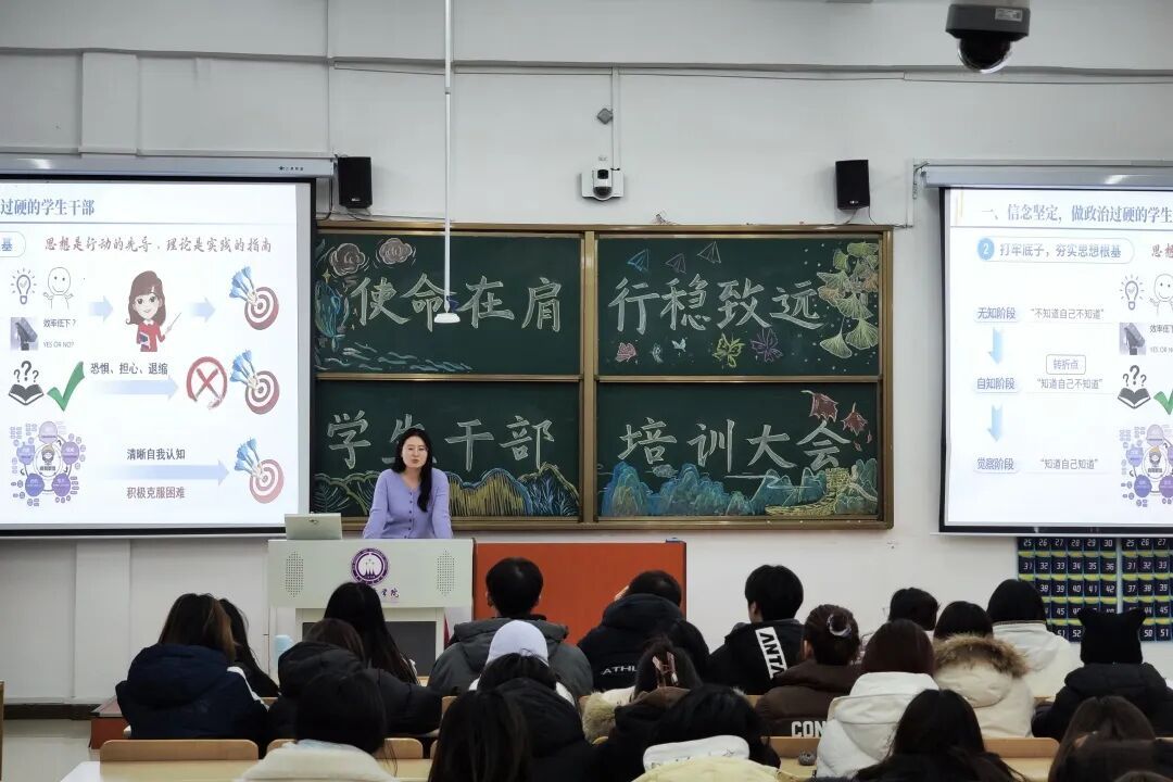 本次培训以“如何成为优秀学生干部”为核心主题展开。培训过程中,李秋颖围绕信念坚定、责任担当、服务意识、能力提升四个方面,结合自身工作经验与典型案例,为学生干部分享了工作方法与成长建议。通过本次培训,学生干部们不仅明晰了自身的职责与定位,还掌握了更具实操性的工作技巧,大家纷纷表示收获颇丰,将把所学运用到后续的学生工作中。